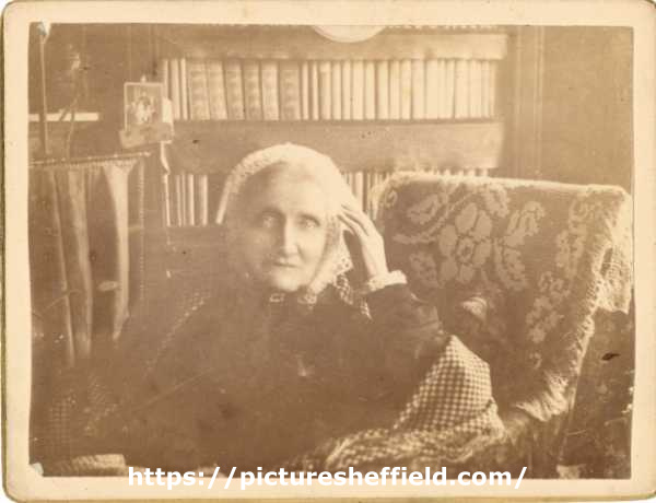 | Mary Anne Rawson (nee Read) (1801-1887) pictured in her library at Wincobank Hall, c. 1886 | |