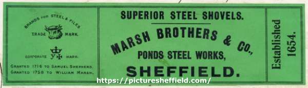 ![Label for superior steel shovels, Marsh Brothers and Co.[Ltd.], steel manufacturers, Ponds Steel Works,[Shude Lane], Sheffield, England, c.1906](https://www.picturesheffield.com/imagefiles/jpgl_sheffield3//arc08186.jpg)