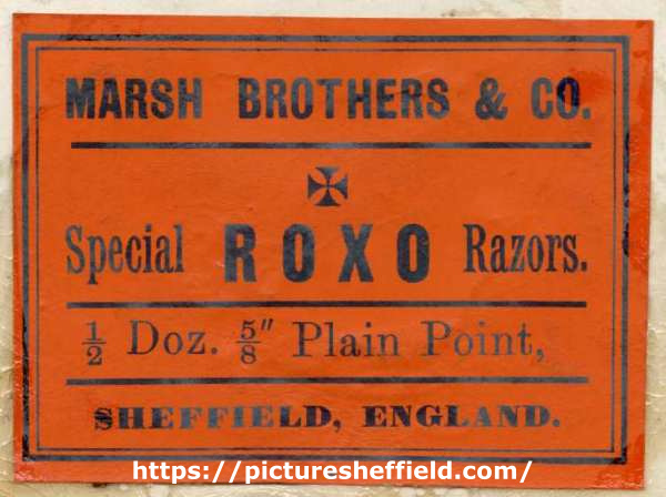 ![Label for special Roxo razors, Marsh Brothers and Co.[Ltd., steel manufacturers, Ponds Steel Works,Shude Lane], Sheffield, England, c.1906](https://www.picturesheffield.com/imagefiles/jpgl_sheffield3//arc08193.jpg)