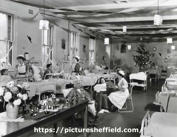 | Christmas on the elderly womens' ward, City General Hospital (latterly the Northern General Hospital), Fir Vale | |