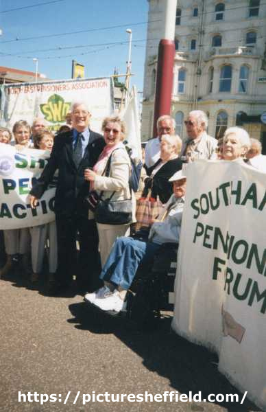 | Councillor Patricia J. Midgley with Rodney Bickerstaffe, Second President of the National Pensioners Convention and members of the Sheffield Pensioners Action Group attending the Pensioners Parliament, Blackpool, Lancashire | |