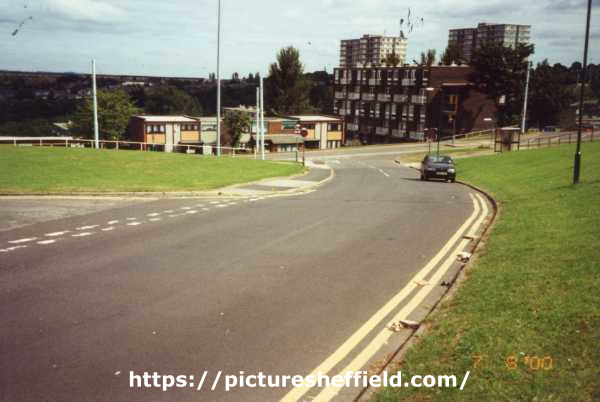 | Kenninghall Road looking towards Park Grange Road showing (top right) flats (prior to demolition) on junction of Beldon Road and Samuel Drive, c.2001 | |