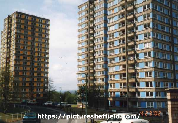 | Claywood Flats showing (right) Norfolk tower block and (left) Fitzwalter tower block | |