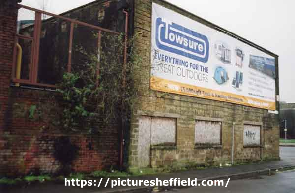 | Advertisement on old forge on Livesey Street at junction with (right) Penistone Road | |