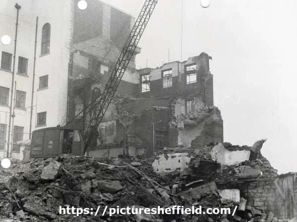 | Demolition of Surrey Street United Methodist Chapel showing (top left) the Central Library | |