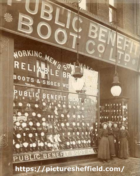 | Shop assistants outside Public Benefit Boot Co. Ltd., shoe and boot manufacturers and retailers, Moorhead | |