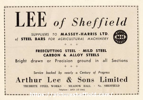 Original at Sheffield Local Studies Library: Arthur Lee and Sons, examples of advertisements 338.4 SSTF (207 014 022). |