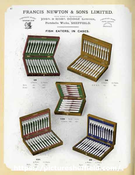 ![Francis Newton and Sons Ltd., Portobello Works [Portobello Street] (incorporating Josh. and Robert Dodge Ltd) - fish eaters in cases](https://www.picturesheffield.com/imagefiles/jpgl_sheffield3//y16613.jpg)