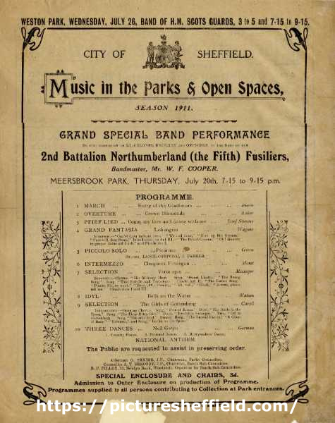 | Programme for the Music in the Parks and Open Spaces season: Meersbrook Park | |